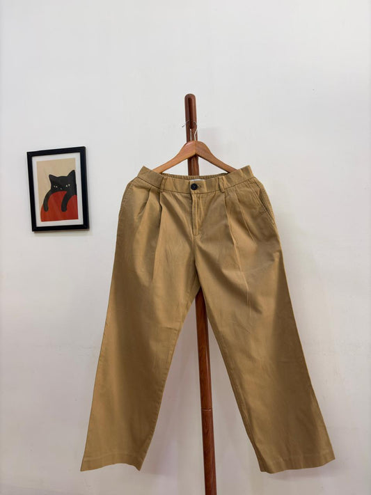 Korean 'Draw fit' Pleated Baggy Cotton Trouser